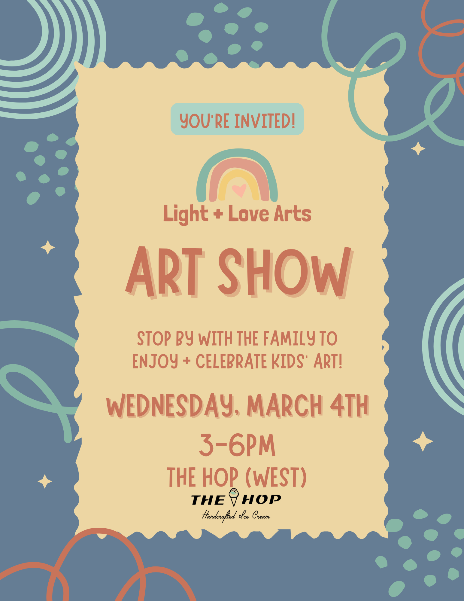 A Kid’s Art Show celebrating their creative magic with our friends at The Hop Ice Cream Shop!