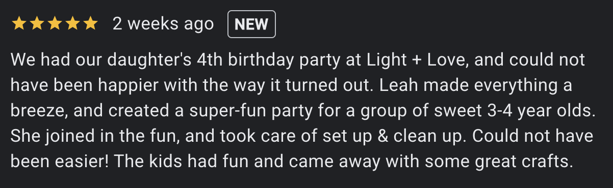 review from a Birthday Party Parent